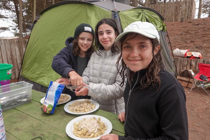 La cena se prepara en grupo, con los jóvenes: realizamos comidas especiales outdoor : hamburguesas a la parrilla, pizza al horno de barro, burritos...